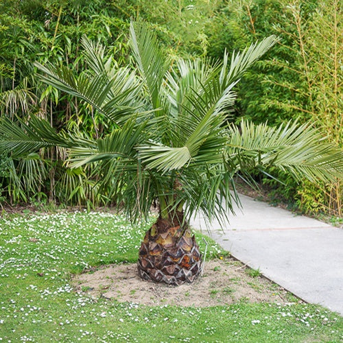 Il est assez simple d'entretenir le Cocotier du Chili, mais cela nécessite une attention régulière. Pour y procéder, les spécialistes Willemse vous préconisent d’arroser régulièrement, mais modérément, surtout pendant les périodes sèches. Utilisez un paillis organique pour maintenir l'humidité du sol et limiter la croissance des mauvaises herbes. Fertilisez également chaque année, au début du printemps, avec un engrais équilibré spécialement formulé pour les palmiers pour stimuler la croissance et la floraison. Évitez la fertilisation excessive susceptible d’entraîner une croissance excessive et d’affaiblir la plante. Maintenez la forme et la santé de votre cocotier en effectuant des taillages réguliers. Enlevez les feuilles mortes ou endommagées dès qu'elles apparaissent, en veillant à ne pas blesser le tronc ou les nouvelles pousses. Enfin, vous pouvez aussi effectuer une taille prudente pour aider à contrôler la hauteur de l'arbre et à prévenir tout encombrement dans le jardin.