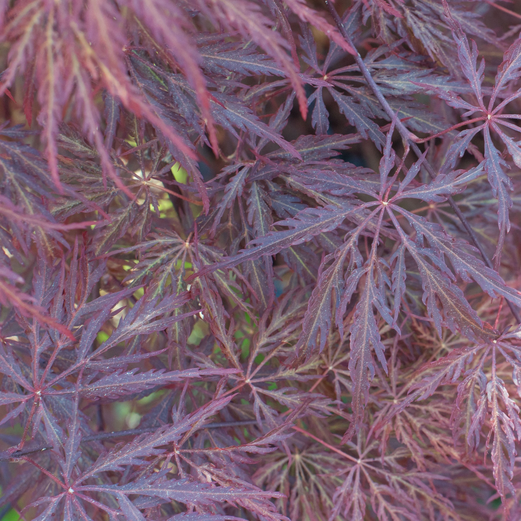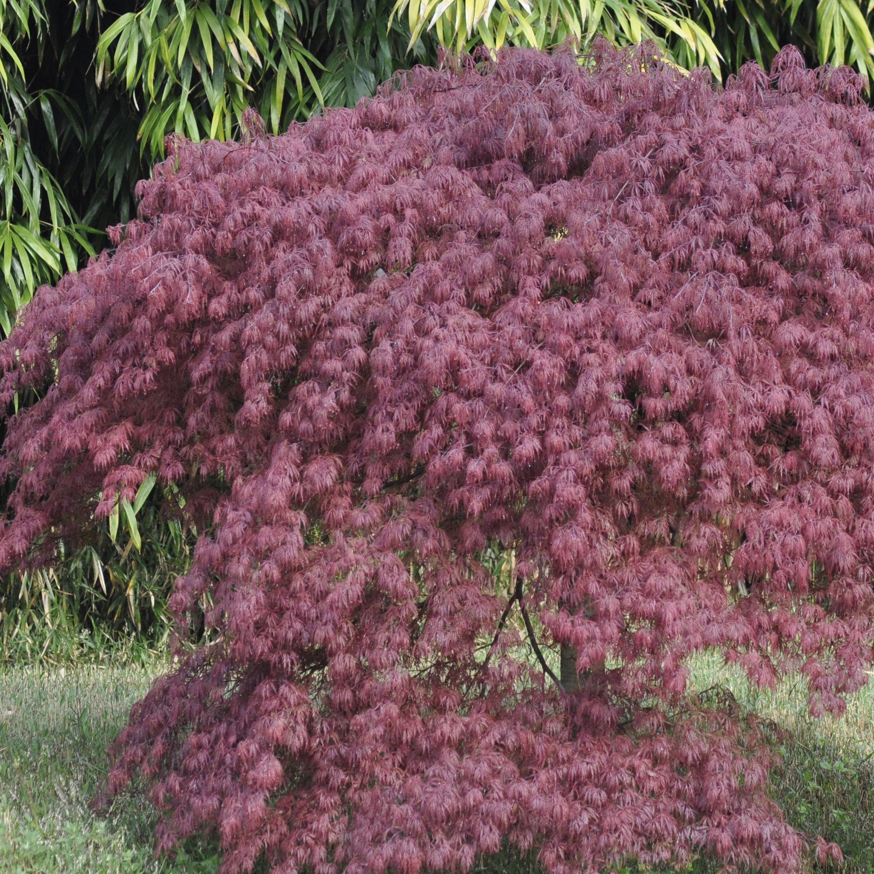 Feuillage fin, découpé, de couleur rouge pourpre au printemps et en été. Il vire au rouge feu en automne, ce qui le rend très attrayant. L'Acer palmatum dissectum inaba shidare est l’un des érables du Japon les plus diffusés en Europe. Cet érable du Japon est un petit arbre au port étalé aimant la terre acide dite terre de bruyère, idéal pour les petits jardins, à planter hors périodes de gel et à l'abri des vents froids.