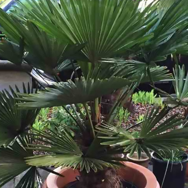 Autrement connu sous l’appellation de Trachycarpus fortunei “Nanus”, le palmier chanvre du Chusan nain est un palmier qui offre une allure exotique et devient une pièce maîtresse de votre aménagement. Provenant des montagnes chinoises, il est rustique et robuste bien qu'il a une apparence délicate.