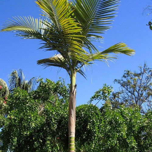 Magnifique palmier très élégant au port majestueux. Remarquable couleur gris lumineux du revers des pennes. Croissance rapide. Palmier à stipe lisse et annelé. Les fleurs sont de couleur rose à mauve. Demande beaucoup de lumière et d'humidité. Ne pas exposer au vent. Palmier idéal pour de grandes vérandas, mais culture possible en appartement clair en brumisant le feuillage très régulièrement. Température minimale de conservation généralement observée : -2 °C. Délai de livraison 4 à 6 semaines.