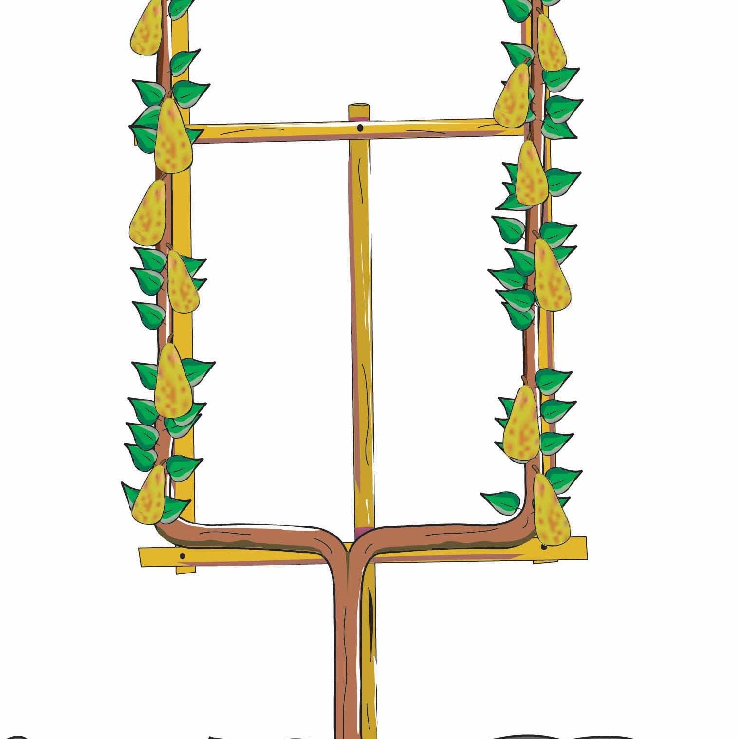 Les 2 branches charpentières sont espacées de 40 cm et sont fixées sur une armature en bois pour la livraison. Pour encore l’augmenter, vous pouvez planter un autre poirier à proximité, par exemple la variété William’s, excellent pollinisateur du poirier Conférence.