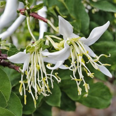 Le chèvrefeuille grimpant à fleurs blanches est une variété magnifique qui ajoute une touche d'élégance à tout jardin. Les fleurs blanches dégagent un parfum doux et agréable, attirant les abeilles et les papillons. Les feuilles vertes brillantes offrent également un contraste attrayant avec les fleurs blanches. Cette variété de chèvrefeuille préfère les zones ensoleillées ou partiellement ombragées et nécessite un sol bien drainé pour une croissance optimale.