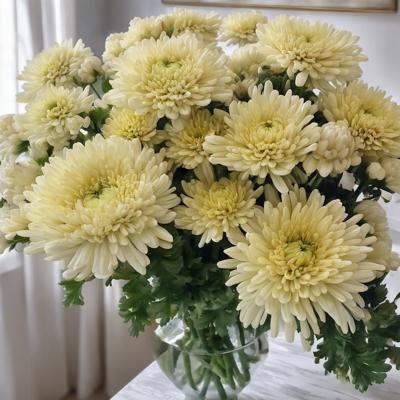 Les chrysanthèmes peuvent être un excellent choix pour créer des centres de table attrayants et abordables. Placez-les dans des vases en verre ou en céramique assortis et disposez-les au centre de votre table à manger ou sur une table basse dans le salon. Vous pouvez également associer les chrysanthèmes à d'autres fleurs et feuillages pour créer des arrangements plus complexes et dynamiques.