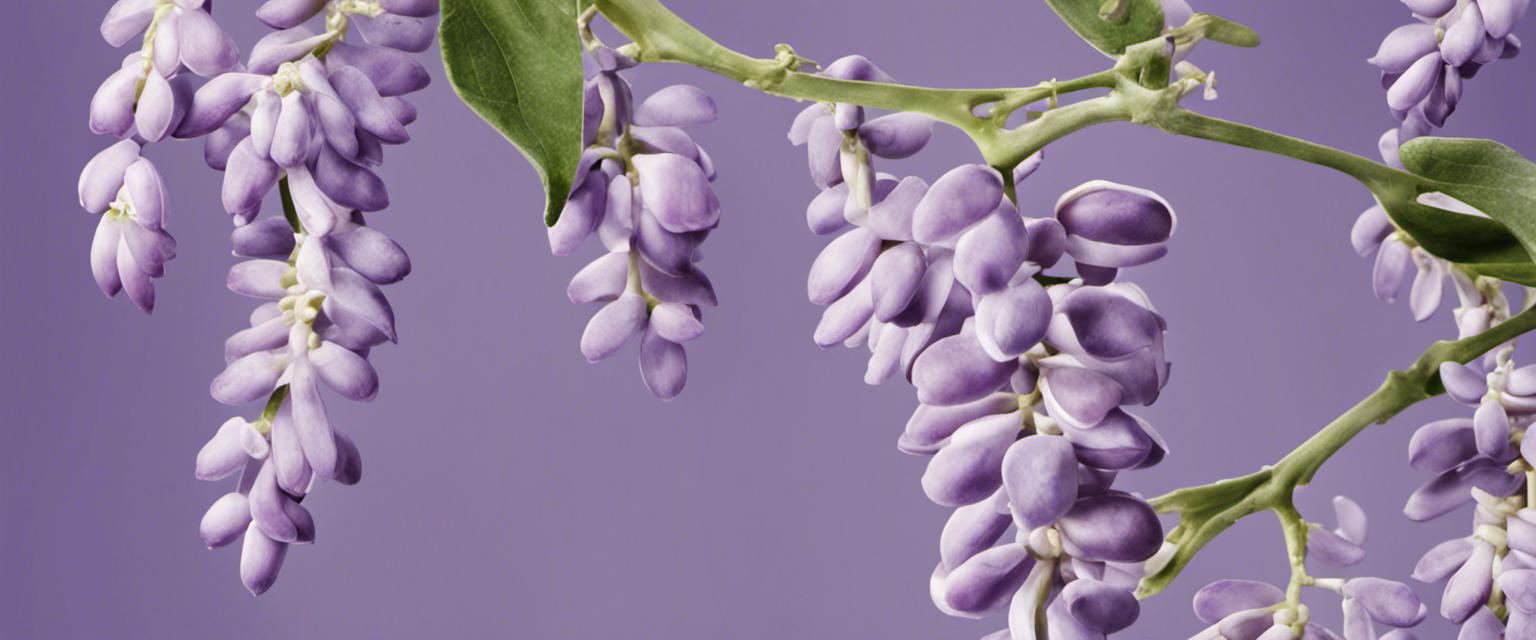 Les fleurs de la glycine du Japon peuvent être de différentes couleurs, notamment le violet, le rose, le blanc et le bleu. Elles ont une forme de papillon, avec un étroit pétale supérieur et deux pétales inférieurs plus larges. Les grappes de fleurs pendent du haut de la plante et peuvent mesurer jusqu'à 60 centimètres de long.