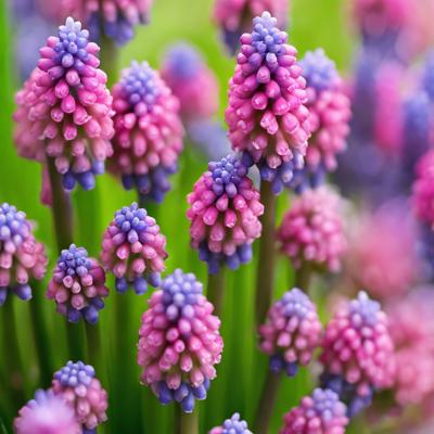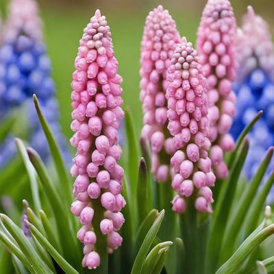 La Fleur Muscaris rose, également connue sous le nom scientifique de Muscari botryoides, est une plante vivace originaire d'Europe et d'Asie occidentale. Elle appartient à la famille des Asparagaceae et est largement appréciée pour ses grappes de fleurs roses éclatantes.