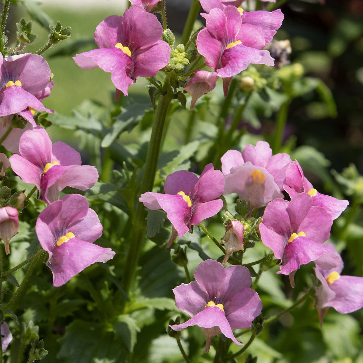 Verveine (Verbena) : elles ont des boutons floraux en forme de petites étoiles, regroupées en bouquets. Leurs couleurs varient du blanc à la pourpre en passant par le rose, le rouge et le bleu. Elles apprécient d’être en contact direct avec la lumière. Elles sont un excellent choix pour les caissons et les suspensions.