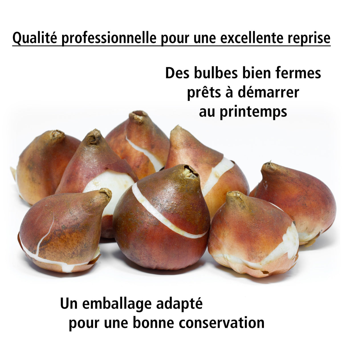 Pour avoir un effet encore plus attrayant, plantez des tulipes en harmonie de couleurs. Vous verrez que votre jardin sera encore plus coloré et plus vibrant. Enfin, nous n'insisterons pas sur le rôle décoratif très important des tulipes qui se trouvent à leur place en massifs, bordures, plates-bandes, rocailles, potées fleuries, jardinière, vasques... Une plantation qui garantira un splendide décor végétal dans votre jardin qui reviendra chaque année !