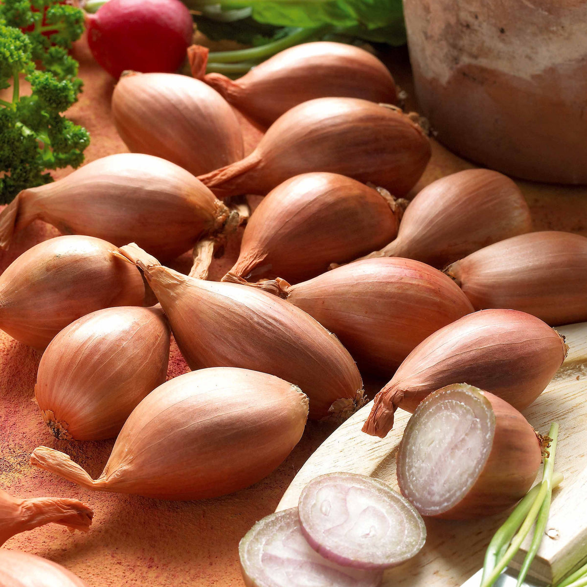 Les échalotes (Allium ascalonicum) sont des membres de la famille des oignons de cuisine. Elles sont un goût assez fort qui peut ajouter une saveur subtile et délicieuse à de nombreux plats. Elles sont ssez grosses et peuvent être repiquées l'année suivante car jusqu'à dix oignons se forment autour de la plante mère. Les jeunes feuilles peuvent être utilisées comme ciboulette, ce qui les rend polyvalentes dans la cuisine.