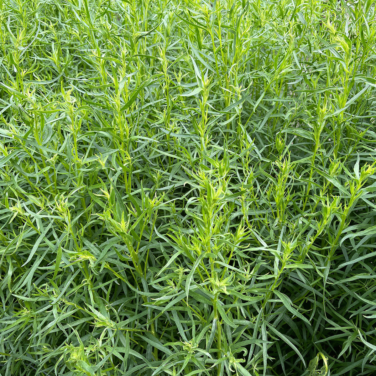 L'estragon développe un port touffu et compact grâce à ses tiges fines et ramifiées. Ses feuilles lancéolées et ses rares fleurs jaune-vert ajoutent une touche délicate à l'esthétique de toute bordure ou massif de plantes aromatiques.