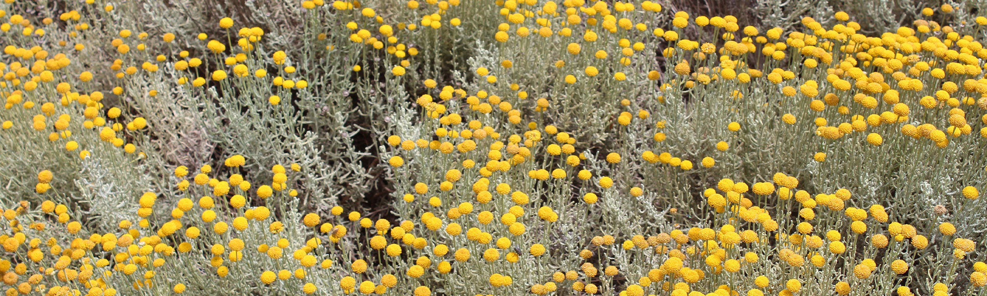 LaSantolina pousse en formant des coussins denses et sphériques, atteignant généralement 50 cm de hauteur et s’étendant sur 70 à 80 cm de largeur. Elle offre une structure arrondie et compacte qui se prête bien aux bordures et aux compositions paysagères.