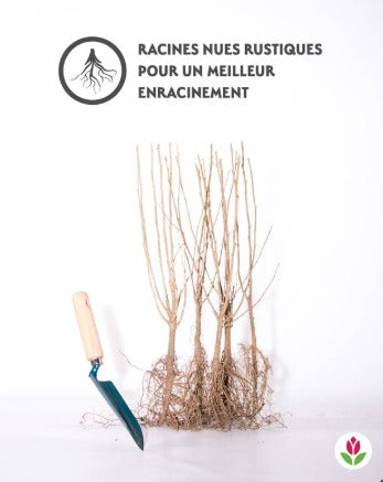 Avec des racines nues en effet, vous n'avez pas à payer la terre et le pot. D'autre part, l'article pèse beaucoup moins lourd lors du transport et vous évitez ainsi le surcoût lié aux frais de port concernés. On peut noter aussi qu'un pied plus lourd implique un certain déséquilibre de poids et peut augmenter les tensions entre le pied et la plante elle-même durant le transport, même si nous sommes très vigilant à la qualité de l'emballage du colis.
