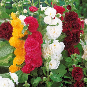 Les Roses trémières doubles offrent de belles fleurs en forme de gros pompons qui ornent leurs longues tiges rigides. Proposées en mélange, ces Roses trémières doubles illumineront votre jardin durant les mois de juin, juillet, août et septembre avec leurs belles couleurs chatoyantes.