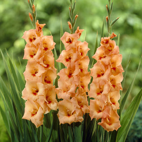 Le Glaïeul Peter Pears, connu sous le nom scientifique Gladiolus 'Peter Pears', est une espèce remarquable au sein des jardins pour ses couleurs vives et sa stature fière. Cette variété de glaïeul se distingue par ses fleurs en forme de tube groupées le long d'une haute tige qui peut atteindre de 80 à 120 cm de hauteur. En largeur, chaque plante s'étale généralement sur environ 10 à 20 cm. Les fleurs, souvent dans des teintes de orange ou rose saumon, ajoutent une touche colorée aux paysages de jardin. En termes d'usage, le Glaïeul Peter Pears est souvent utilisé comme plante ornementale dans les bordures de jardin et pour créer des arrangements floraux coupés en raison de sa longue durée de floraison et de sa robustesse.