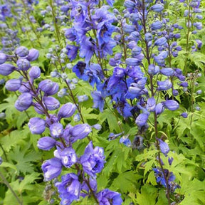 Delphinium Pacific Blue Jay est une plante vivace pouvant atteindre 1,70 m de haut et 50 cm d'envergure. Cette plante rustique résiste à des températures jusque -15°C. Elle apprécie une exposition soleil. Les périodes idéales de plantation sont de février à avril et de septembre à novembrepour une floraison de juin à juillet.