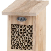 Cet abri pour abeilles est équipé de pailles de bambou de diamètres différents afin que divers types d'abeilles sauvages puissent s'y nicher. Parois de 15 mm d'épaisseur qui assurent une isolation parfaite, toit incliné pour un drainage facile de l'eau, toit en surplomb qui protège du vent et de la pluie. Il est recommandé de nettoyer les pailles de bambou avec la brosse fournie avant d'accrocher l'hôtel à insectes car les abeilles aiment les passages "nets" et d'accrocher l'abri pour abeilles dans un endroit ensoleillé et exposé au sud.