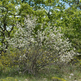 , est un arbuste à découvert pour ses multiples atouts paysagers et pratiques. Se parant d'une silhouette élancée pouvant atteindre une dizaine de mètres, il s'intègre parfaitement dans les petits espace extérieurs tout comme dans les vastes parcs. Son feuillage caduc, généreux en nuances allant du vert au rouge cuivré à l'automne, accompagne une floraison abondante en grappes dès le printemps. De plus, ses fruits estivaux, des baies bleu-violacé comparables aux myrtilles, sont prisées par les oiseaux et appréciées pour des délices culinaires.