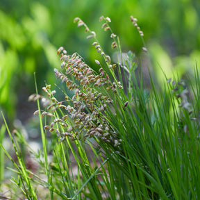 La Briza media atteint en général une hauteur modeste de 60 cm. Son feuillage, d’un vert frais et léger, persiste à travers les saisons, ce qui en fait une option idéale pour maintenir une touche de verdure même durant les mois les plus froids. Les feuilles fines et légèrement arquées semblent danser au moindre souffle de vent, conférant à la plante un aspect ondoyant et apaisant. De juin à août, cette beauté se pare de petites fleurs délicates qui prennent la forme de clochettes légères, comme suspendues par un fil invisible, oscillant doucement au rythme de la brise estivale.