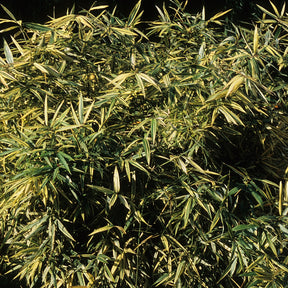 Ce bambou apprécié pour son feuillage panaché de couleur vert et blanc crème possède de nombreuses feuilles compactes et larges. Le bambou Hibanobambusa tranquilans Shiroshima a fait preuve d'une grande résistance au froid. Il peut atteindre 2 à 3 m de haut. Il supporte des températures avoisinant les -20°C. Lors de la plantation, vous pouvez mettre une barrière anti-rhizomes pour ralentir la croissance du bambou qui peut devenir envahissant.