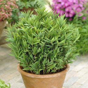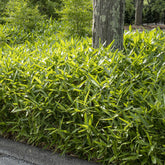 le rend idéal pour les régions aux hivers difficiles. Le Bambou nain offre une résistance modérée à la sécheresse, ce qui en fait une plante exigeant peu d'eau. Son feuillage persistant offre un élégant vert profond toute l'année, contribuant à la création d'un espace harmonieux dans votre jardin. Avec un port dressé, il est parfait pour créer des haies denses et offrir une certaine intimité. Son caractère non envahissant en fait une excellente option pour les jardiniers qui souhaitent un entretien minimal tout en profitant d'une structure végétale robuste.