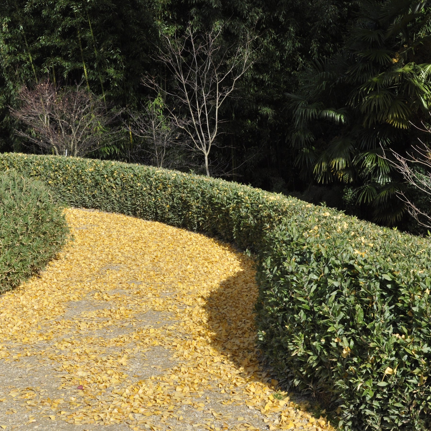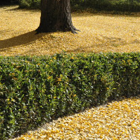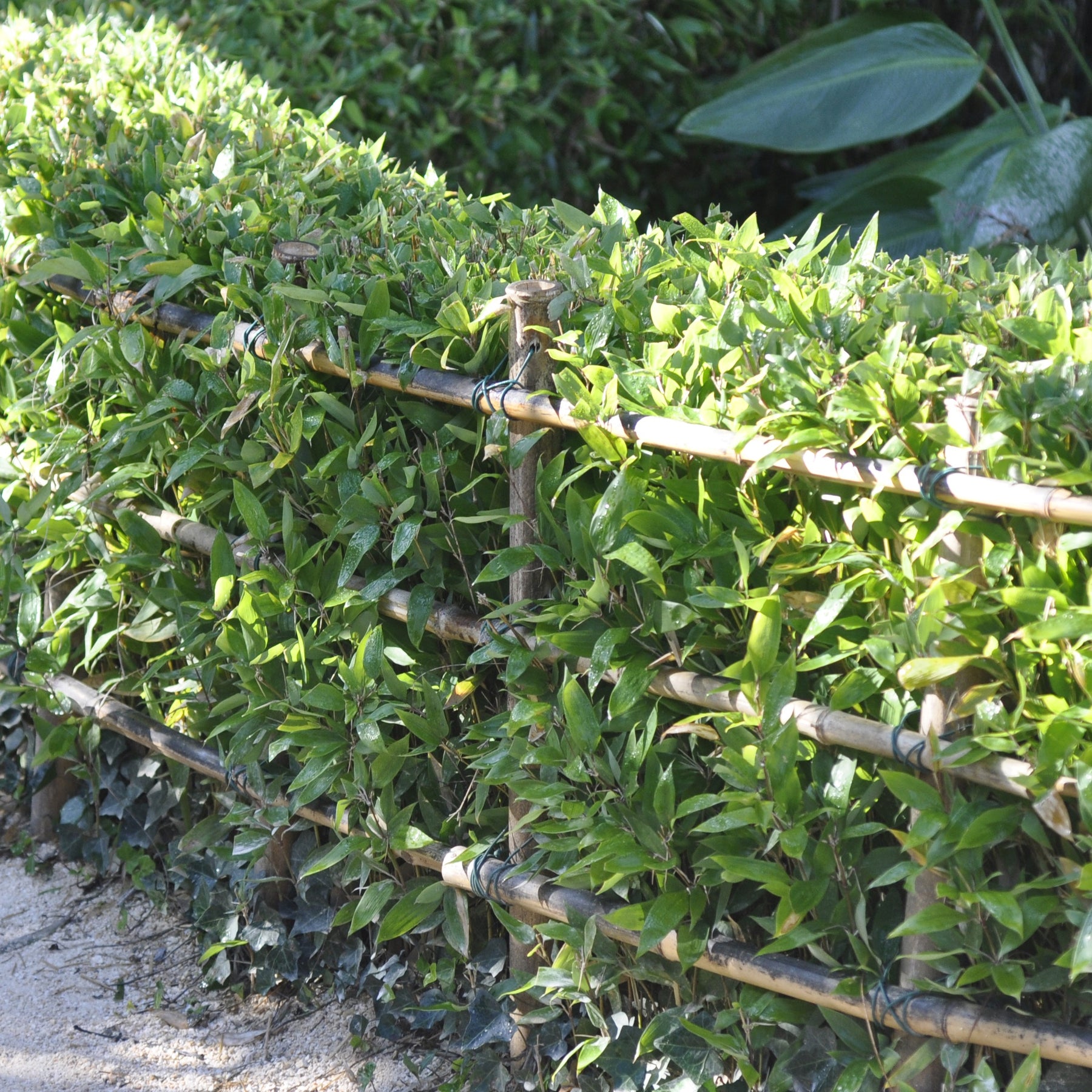 Ce bambou nain Shibataea kumasaca originaire du Japon a des feuilles courtes et larges, d'un vert sombre soutenu, lui donnant un faux air de Ruscus (petit houx). Dense en feuilles et rhizomes, ce qui le rend idéal comme couvre-sol ou en petite haie basse. Les chaumes très fins poussent en très légers zigzags. Préfère les sols acides. Sous un soleil ardent, ses feuilles ont tendance à jaunir s'il manque d'engrais ou si le terrain est mal drainé.