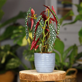 Vous êtes prêt à accueillir ce joyau du Brésil dans votre maison ? Commencez par choisir un terreau léger de bonne qualité et bien drainé pour lui assurer un environnement propice. Lorsque vous plantez votre Begonia ‘Tamaya’ Roze Stam, choisissez un endroit lumineux, mais à l'abri du soleil direct. Évitez également les courants d'air. Vous avez une bouture ? Patientez jusqu'au printemps et placez-la dans un verre d'eau jusqu'à ce que des racines se forment. Elle sera ensuite prête à être plantée dans un pot. Rappelez-vous que le Bégonia maculata aime se sentir à l'étroit, alors n'hésitez pas à le rempoter seulement lorsqu'il est vraiment nécessaire.