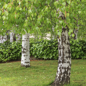 Le bouleau d'Europe vit en groupe et préfère être entouré de ses congénères, mais aussi d'autres espèces de bouleaux. Le betula septentrionalis (bouleau de Chine) et son tronc orangé forment un beau duo. Son écorce avec de belle couleur blanche se marie très bien avec des délicates fleurs roses du prunus serrulata ou cerisier du Japon. Les jardiniers Willemse vous proposent d’aménager le pied du betula pendula en choisissant des vivaces qui s’adaptent aux milieux ombragés et demandent peu d'entretien.
