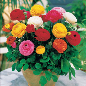 Encore appelées « renoncule des fleuristes », les renoncules Mirabelle se distinguent par une taille réduite et l'abondance de leurs grosses fleurs : chaque bulbe offre jusqu'à 10 fleurs ! Elles sont régulièrement utilisées en bouquet où leur opulence et la richesse de leurs coloris font merveille. Elles sont d’ailleurs très appréciées dans la confection d’arrangements floraux comme les bouquets de mariées par exemple.