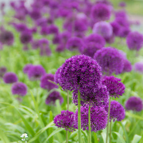 Les variétés de bulbes fleuris inclus dans cet ensemble sont les suivantes :- Galanthus nivalis, ou Perce-neige, une fleur blanche en forme de cloche qui fait partie des premières à éclore, même sous la neige. Haute de 15 cm, elle symbolise l'espoir et annonce le retour du printemps.- Muscari Armeniacumn dont les petites grappes bleu-violet, semblables à des grappes de raisins, peuvent atteindre 20 cm de hauteur. Le Muscari est une des rares fleurs qui conservent leur couleur vibrante, même en pleine lumière !- Narcissus Botanisch gemengd, un mélange de narcisses de différentes formes et tailles, allant du blanc pur au jaune doré, peut atteindre une hauteur de 30 à 45 cm. La légende raconte que cette fleur tient son nom du jeune Narcisse qui se transforma en cette fleur dans la mythologie grecque.- Tulipa Linifolia, une tulipe de petite taille (20 cm) qui éblouit avec ses pétales rouge brillant et son centre noir. On l'appelle aussi la tulipe à feuilles de lin pour ses feuilles étroites et linéaires.- Chionodoxa Rosea, également connue sous le nom de Gloire des neiges. Cette fleur atteint environ 15 cm et offre de charmantes petites étoiles roses. Elle est idéale pour illuminer les coins d'ombre de votre jardin.- Anemone Blanda mix, qui présentent un mélange de fleurs bleues, blanches et roses. Atteignant environ 15 cm, elles sont parfaites pour créer un tapis de couleur au printemps.- Allium Purple Sensation, dont les superbes fleurs sphériques pourpres peuvent atteindre 90 cm de hauteur. Elles attirent les papillons et sont aussi connues pour repousser certains nuisibles de votre jardin.- Allium Moly, aux fleurs jaunes lumineuses en forme d'étoile, pouvant atteindre environ 25 cm. Selon la légende, Ulysse aurait utilisé cette plante pour protéger ses compagnons de l'ivresse.Les associations possibles
