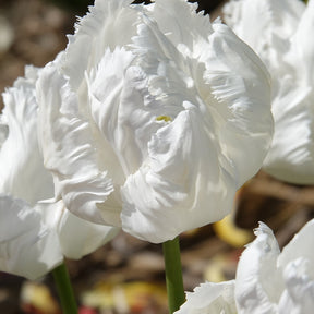 L’originalité de la tulipe White Parrot réside dans ses pétales gaufrés et découpés, de couleur blanche et marqués d’une petite bande verte. Lumineuse à souhait, cette belle tulipe dévoile, d’avril à mai, de magnifiques fleurs de 15 cm de circonférence. À maturité, la plante atteint environ 45 cm. Tout à fait adaptée pour une plantation en pleine terre comme en pot, la tulipe White Parrot est également une belle fleur à couper pour être intégrée dans les bouquets printaniers.