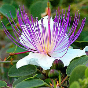 Le câprier épineux se marie parfaitement avec une variété d'autres plantes pour créer une ambiance méditerranéenne harmonieuse et ensoleillée dans le jardin. Pour un tableau saisissant, associez-le à d'autres plantes typiques de la région, telles que la lavande, le romarin et le thym, créant ainsi une palette de couleurs et de parfums qui évoque les collines ensoleillées du sud de la France.