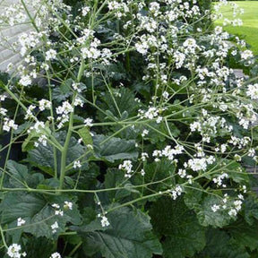 Extrêmement vivace, le crambe cordifolia va chercher ses nutriments très profondément dans le sol. Pour ce représentant des Brassicaceae, l'existence prend la forme d'un marathon et non d'un sprint... Ce n'est qu'au bout de deux à trois ans en terre qu'il atteint sa taille adulte, laquelle oscille entre 1,50 et 1,80 m. En contrepartie de ce développement relativement lent, cet arbuste fleuri vous tiendra compagnie pendant une dizaine d'années.