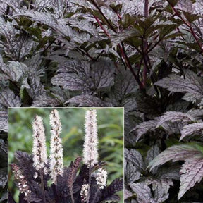 Cierge d'argent Black Negligée une nouvelle variété à feuillage brun, presque noir pouvant atteindre 80 cm de haut et 50 cm d'envergure. Cette plante rustique résiste à des températures jusque -15° C. Elle apprécie une exposition mi-ombre ou ombre. Les périodes idéales de plantation sont de février à avril et de septembre à novembre pour une floraison de septembre à octobre.