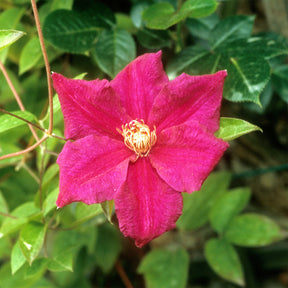 italienne Ernest Markham est caractérisée par sa croissance vigoureuse et ses fleurs spectaculaires rouge pourpre. Ces floraisons estivales, avec leurs étamines dorées, ne passent jamais inaperçues. Cette variété mesure généralement jusqu'à 4 mètres de hauteur. Sa