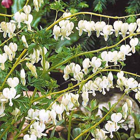 Dicentra est charmant avec d'autres habitants d'ombre claire tels que Aquilegia, les fougères, des campanules, des alchémilles, Phlox divaricata et les pulmonaires.Les coeurs de Marie animent véritablement les jardins boisés. Plantez D. spectabilis avec des hosta ou des géraniums vivaces étalés, ou complétez avec des annuelles lorsque cette plante entre en dormance en été. Le nouveau feuillage rougeâtre émerge du sol au tout début du printemps et les plantes poussent rapidement pour devenir l'une des premières plantes vivaces à floraison printanière, se combinant bien avec les tulipes et les jacinthes.