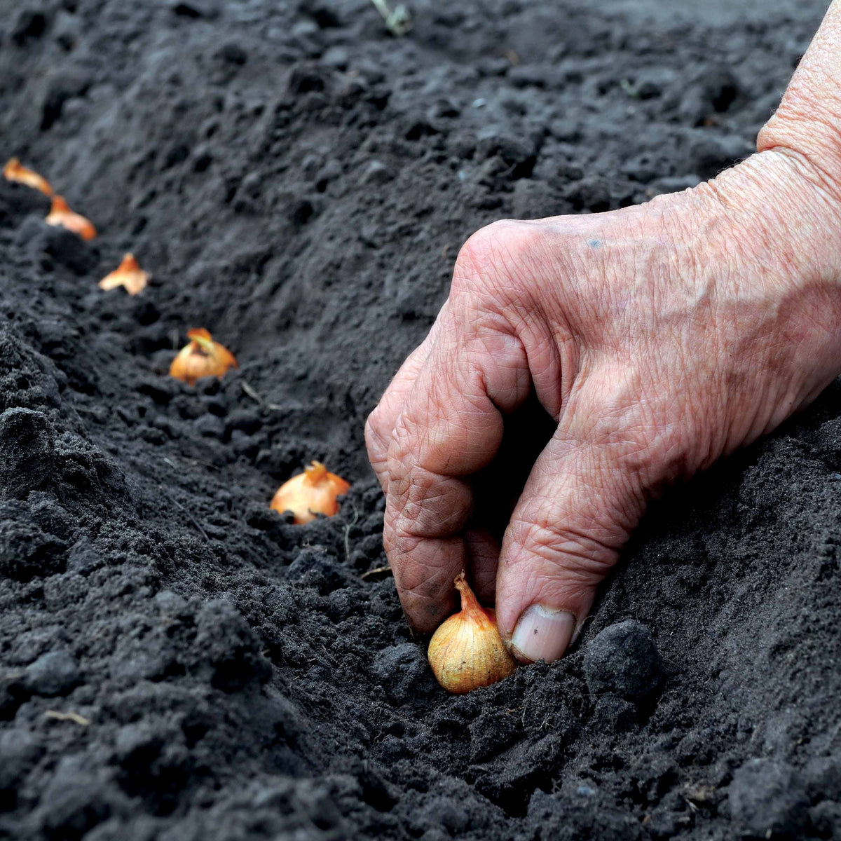 La plantation est très facile et ne nécessite pas de compétences particulières : Il suffit de choisir un emplacement ensoleillé, de travailler le sol sur 20 cm de profondeur et de l'affiner en surface. Vous pourrez alors planter en surface chaque bulbe à 10 cm d'intervalle sur des lignes espacées de 20 cm à 25 cm. Vous pourrez ensuite les voir grossir et se multiplier jusqu’en cours d’été sans soins particuliers si ce n’est un ou 2 binages entre les lignes mais en tout cas pas d’arrosage.