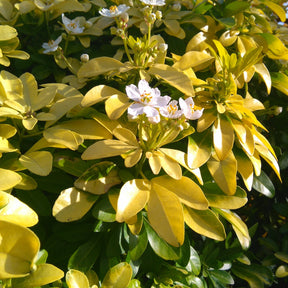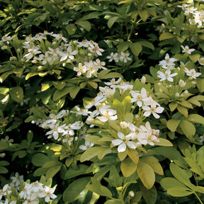 L'oranger du Mexique doré est une plante horticole issue de l’espèce Choysia ternata. Comme les agrumes, il appartient à la famille des Rutacées. Originaire du Mexique et du sud des États-Unis, cette variété est un arbuste persistant qui produit de nombreuses fleurs parfumées et des fruits comestibles. Ses feuilles sont vertes et brillantes et ses fleurs blanches ou roses apparaissent tout au long de l'année. À maturité, l’orange du Mexique peut atteindre une hauteur de 3 à 4 mètres et une largeur de 2 à 3 mètres.