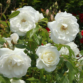 Tout d'abord, leur floraison abondante attire les pollinisateurs, comme les abeilles et les papillons, favorisant ainsi la biodiversité et la santé de l'écosystème. Ensuite, les fleurs coupées de ces rosiers sont parfaites pour créer des bouquets enchanteurs qui apportent la joie et la fraîcheur de l'extérieur à l'intérieur de la maison. De plus, la culture des rosiers est souvent perçue comme une activité relaxante et gratifiante, offrant un refuge paisible dans le tumulte de la vie quotidienne.