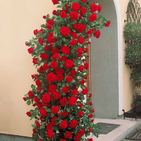 Pour entretenir cette collection de rosiers grimpants et garantir une floraison optimale, assurez-vous de les planter dans un lieu ensoleillé et de respecter une distance de plantation de 200 cm pour leur permettre de bien s'épanouir. Arrosez modérément et veillez à un sol bien drainé. Taillez après la floraison d'octobre pour stimuler la croissance l'année suivante. L'apport d'un engrais spécifique aux rosiers peut favoriser une floraison abondante. Offrez-leur ces soins et profitez d'une explosion de couleurs sur votre treillis ou pergola.