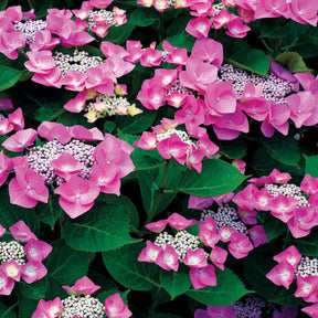 Cette variété d'hortensia est originaire des Pays-Bas. Il est remarquable par sa floraison rose fuchsia à coeur blanc. Elle sera mise en valeur par un feuillage vert sombre très abondant.