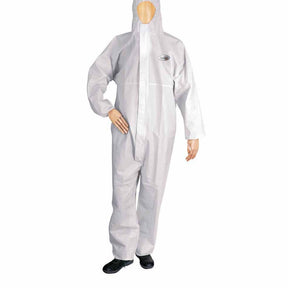 Combinaison de protection antistatique, capuchon en 3 parties, gousset entrejambe 3 pièces, glisssière sous double rabat, manches, jambes et taille élastiquées, passe-pouce, coutures extérieures rabattues. Coutures rabattues pour une meilleure étanchéité. Polypropylène.