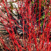 Absolument fantastique en compagnie de végétaux à feuilles persistantes et autres fleurs printanières, le cornouiller à bois rouge Sibirica sait faire parler de lui dans les jardins. Il sera du plus bel effet en compagnie d'arbustes dont le feuillage vert lui donneront la réplique et créeront un contraste avec les branches rouges de l'arbuste. Un troène du Japon, un photinia, un eleagnus x ebbingei ou encore un chalef constitueront d'excellentes toiles de fond pour ce magnifique cornouiller coloré. Pour un effet graphique et contemporain, choisissez un bambou ou une plante originaire d'Asie pour que le paysage extérieur reste vivant et coloré pendant la saison froide.