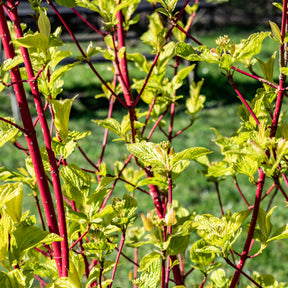 Le cornus alba Sibirica est caractérisé par des tiges rouge foncé, des feuilles vert grisâtre à bords blancs, des petites fleurs blanc crème et des grappes de baies blanches. Il peut être installé dans la plupart des sols et se pare d'une écorce hivernale des plus brillantes lorsqu'il est planté en plein soleil. Il attire également les abeilles et les oiseaux, qui se délectent du nectar de ses fleurs.