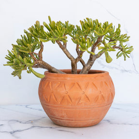 L'Arbre de Jade, avec sa forme unique et son feuillage verdoyant, est parfait pour composer des arrangements complexes avec d'autres plantes d'intérieur. Associez-le à d'autres succulentes ou cactées pour créer un contraste visuel saisissant et maintenir une cohérence en termes de besoin d'entretien. Les plantes d'intérieur comme les Aloès ou les Haworthias se marient particulièrement bien en termes d'esthétique et de besoins similaires en eau et lumière. Une telle combinaison ne se contente pas d'améliorer l'apparence de l'espace mais favorise aussi un environnement harmonieux qui célèbre la diversité végétale dans ses formes variées et captivantes.Le Saviez-vous?