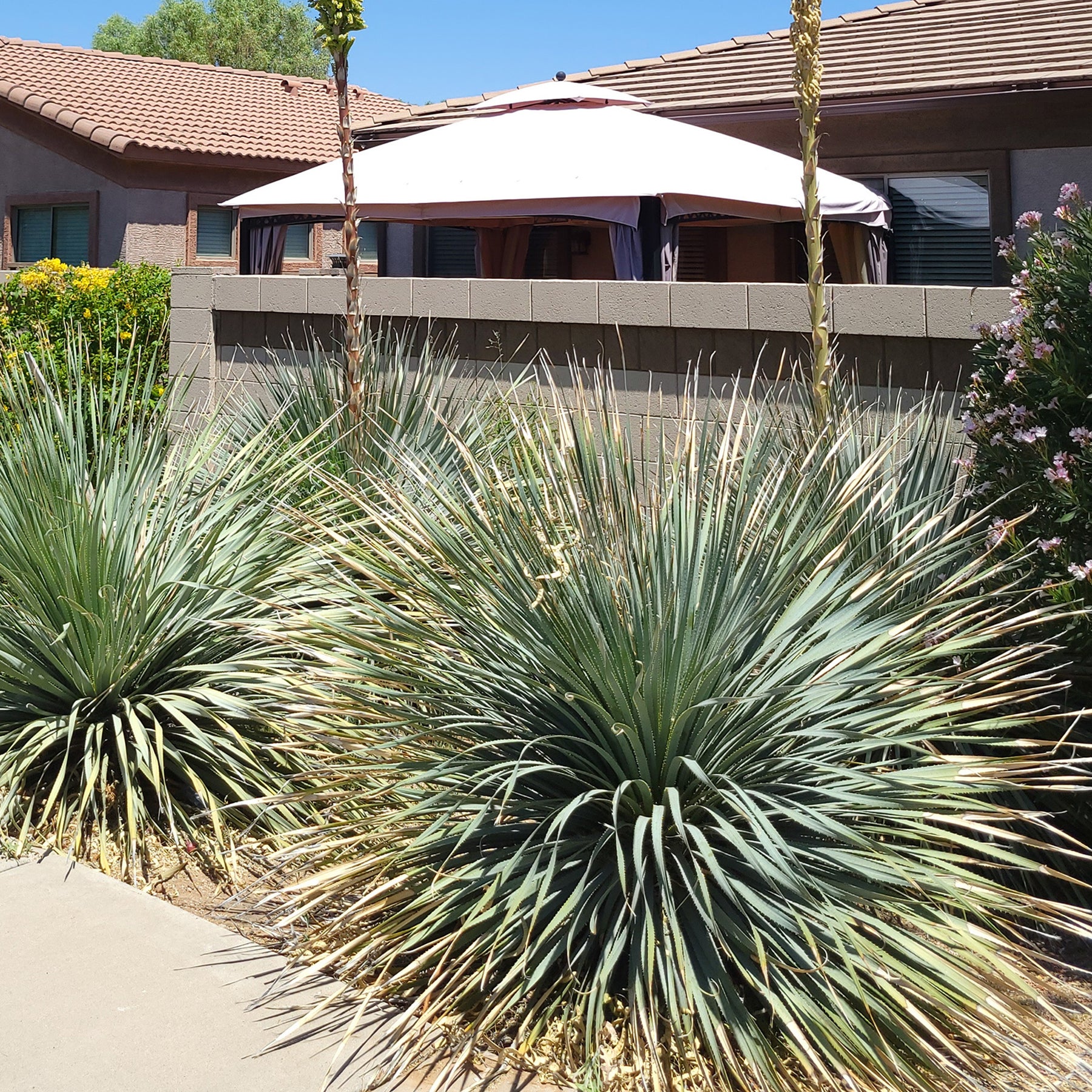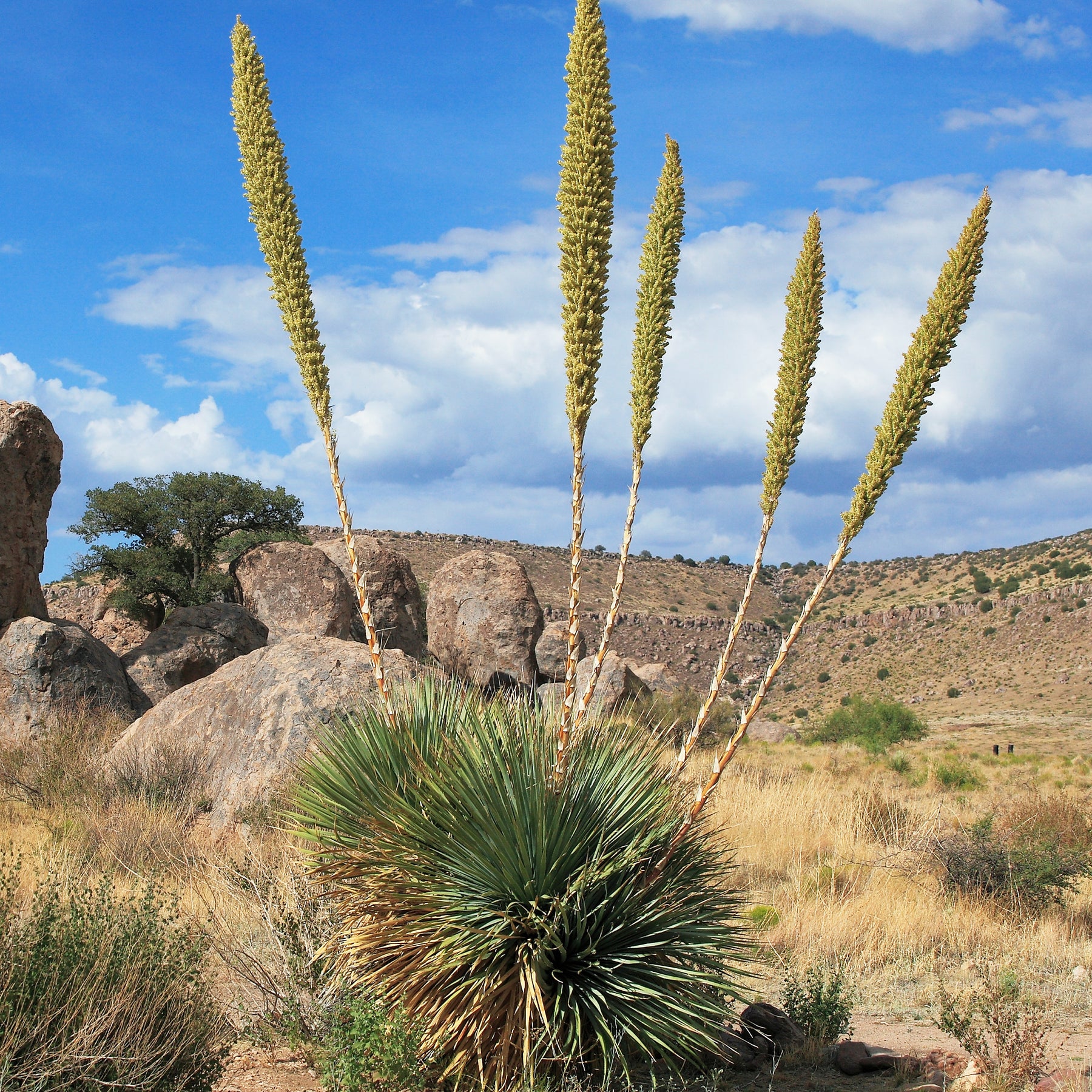 Le Dasylire de Wheeler s'associe très bien avec d'autres plantes succulentes pour créer une ambiance minérale et désertique. En pleine terre, il trouve sa place au centre d'une rocaille ou sur un talus, entouré par des agaves ou d'autres espèces résistantes et graphiques. Son élégance naturelle et son port lui confèrent un attrait décoratif lorsque planté en isolation ou en combinaison dans des jardins thématiques arides.Le saviez-vous?