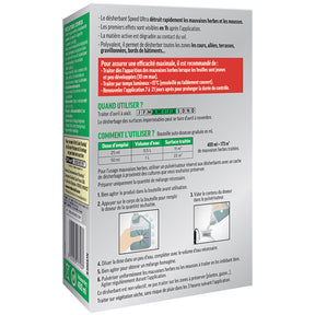 - 400 ml de désherbant permet de couvrir 173m². Doses homologuées : 22,5 ml par 10m² (désherbage) ; 18 ml/10 m² - Traitement généraux (destruction des mousses).