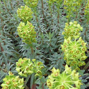 L'euphorbe characias Blue Wonder se marie harmonieusement avec une variété d'autres plantes pour créer des combinaisons florales attrayantes et diversifiées. Elle peut être associée à des plantes à floraison estivale aux couleurs chaudes telles que les lavandes, les achillées et les gaillardes pour créer un tableau floral vibrant qui égaye le jardin tout au long de la saison. Ces plantes à floraison estivale offrent une continuité de la floraison après que l'euphorbe ait terminé sa floraison printanière, assurant ainsi un intérêt visuel constant dans le jardin.