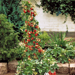 Ces fraisiers sont remontants, c’est-à-dire qu’ils continuent à offrir des fruits durant toute la saison. Grimpants, ils peuvent être plantés de manière verticale. Ils ne nécessitent que peu d’espace au sol et ajoutent une dimension verticale attrayante à votre jardin.