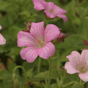 Le Géranium Rose Clair, aussi connu sous le nom de Geranium × cantabrigiense Biokovo, est une plante vivace qui se distingue par sa floraison abondante et sa rusticité. Ses fleurs d'une teinte rose pâle, avec des pétales délicatement nervurés, évoquent une atmosphère romantique et douillette dans le jardin. Ses feuilles semi-persistantes, d'une couleur vert foncé et aromatique, forment un tapis dense et compact, offrant une impression de contraste charmant avec les fleurs. Ce géranium est aussi apprécié pour sa capacité à résister aux maladies et aux ravageurs, ce qui en fait une plante robuste et fiable pour les jardins en plus de son attrait esthétique. Il peut être un choix polyvalent pour tous les jardiniers grâce à sa capacité à tolérer une gamme de conditions de croissance. Cette vivace au feuillage persistant peut atteindre une hauteur de 30 cm. Sa nature rustique lui permet de supporter des températures allant jusqu'à -15 °C et de profiter d'une exposition ensoleillée et mi-ombre. Sa floraison a lieu de mai à août.