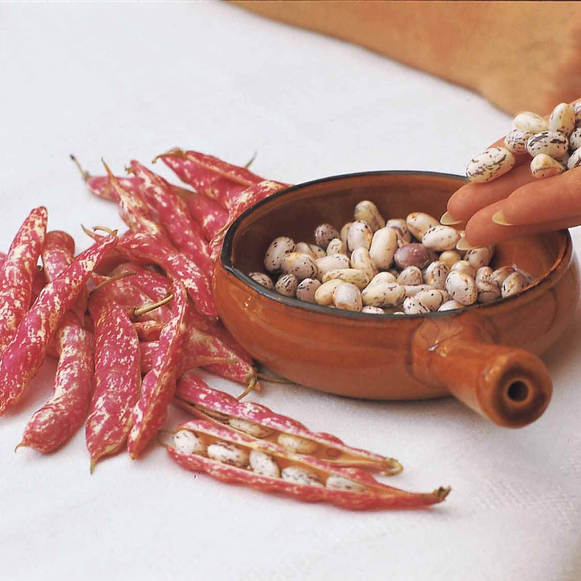 - les haricots à grains secs : la récolte a lieu 120 à 130 jours après le semis. Après maturation complète on arrache les plantes et on les suspend pour les faire sécher. C'est la cas du haricot nain Flageolet Chevrier vert Flagrano, grains secs très appréciés avec l'agneau et le mouton.