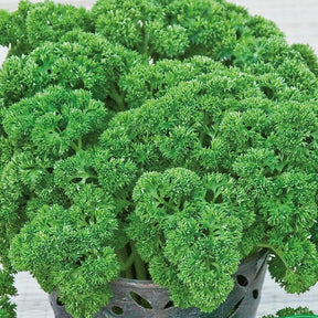Xenon est une véritable amélioration du persil frisé commun. De couleur vert foncé, sa croissance est saine et uniforme et son goût est excellent. On peut le récolter frais tout au long de l'année. Ne pas couper le cœur de la plante au moment où la feuille est récoltée. Lorsque la plante monte, elle perd beaucoup de sa saveur. Semer sous verre ou en pleine terre en ligne. Germe souvent assez lentement. Semer, puis maintenir le sol humide et dépourvus de mauvaises herbes. Parfait dans les pots, les bacs, etc.